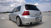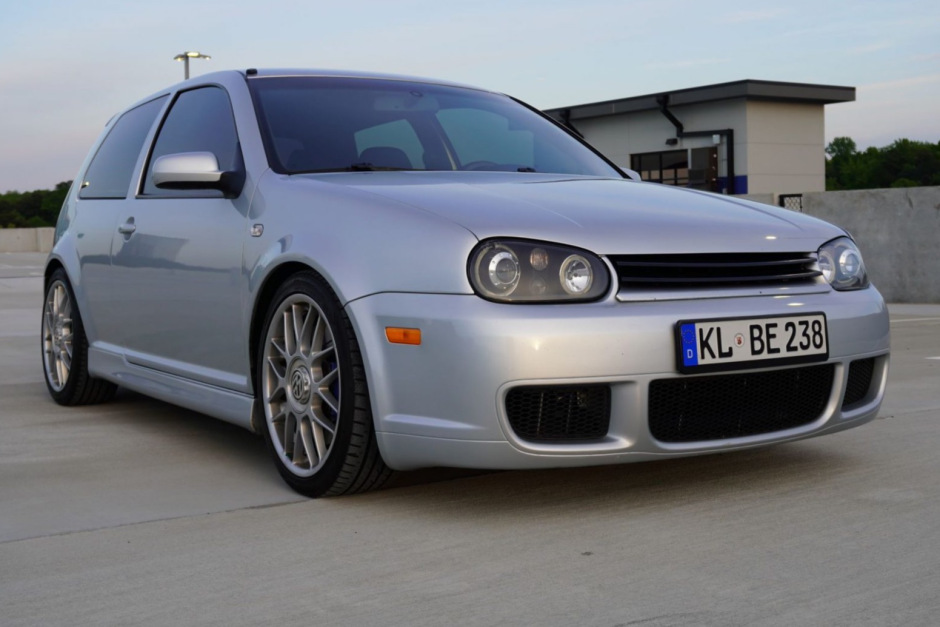 This 2004 Volkswagen R32 is finished in Reflex Silver over black leather and powered by a 3.2-liter VR6 that drives all four wheels through a six-speed manual transmission. Modifications include KW Variant 3 coilovers, BBS RC wheels, LED headlights, a carbon fiber air intake, a Magnaflow exhaust system, an ‘R’ branded Alcantara headliner, an alarm system, a Kenwood touchscreen stereo, and an aftermarket amplifier and subwoofer.
