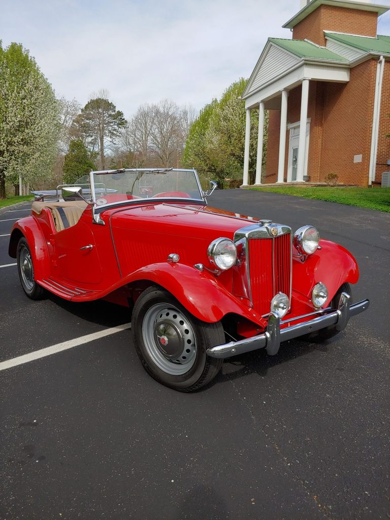 This 1952 MG TD was refurbished during previous ownership and acquired by the seller in 2018. The car is finished in red over tan leather and is powered by a 1,250L inline-four paired with a retrofitted five-speed manual transmission. Features include a black soft-top with side curtains, a tan boot and tonneau cover, driving lights, chrome bumpers with overriders, a folding luggage rack, and a “smuggler’s box” built into the floor.