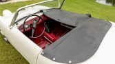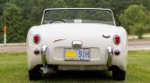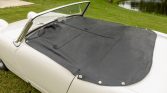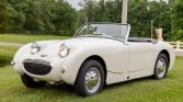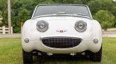 This 1959 Austin-Healey Bugeye Sprite was acquired by the seller in 2014 and was subsequently refurbished and modified. Work reportedly consisted of media blasting and rust repair, a repaint in white, an interior refresh, and overhauls of the suspension and brakes. The car is powered by a replacement 1,275cc inline-four paired with a four-speed manual transmission, and equipment includes front disc brakes, 13″ steel wheels with chrome center caps, a front-hinged hood, rear bumperettes, and a black tonneau cover.