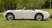 This 1959 Austin-Healey Bugeye Sprite was acquired by the seller in 2014 and was subsequently refurbished and modified. Work reportedly consisted of media blasting and rust repair, a repaint in white, an interior refresh, and overhauls of the suspension and brakes. The car is powered by a replacement 1,275cc inline-four paired with a four-speed manual transmission, and equipment includes front disc brakes, 13″ steel wheels with chrome center caps, a front-hinged hood, rear bumperettes, and a black…