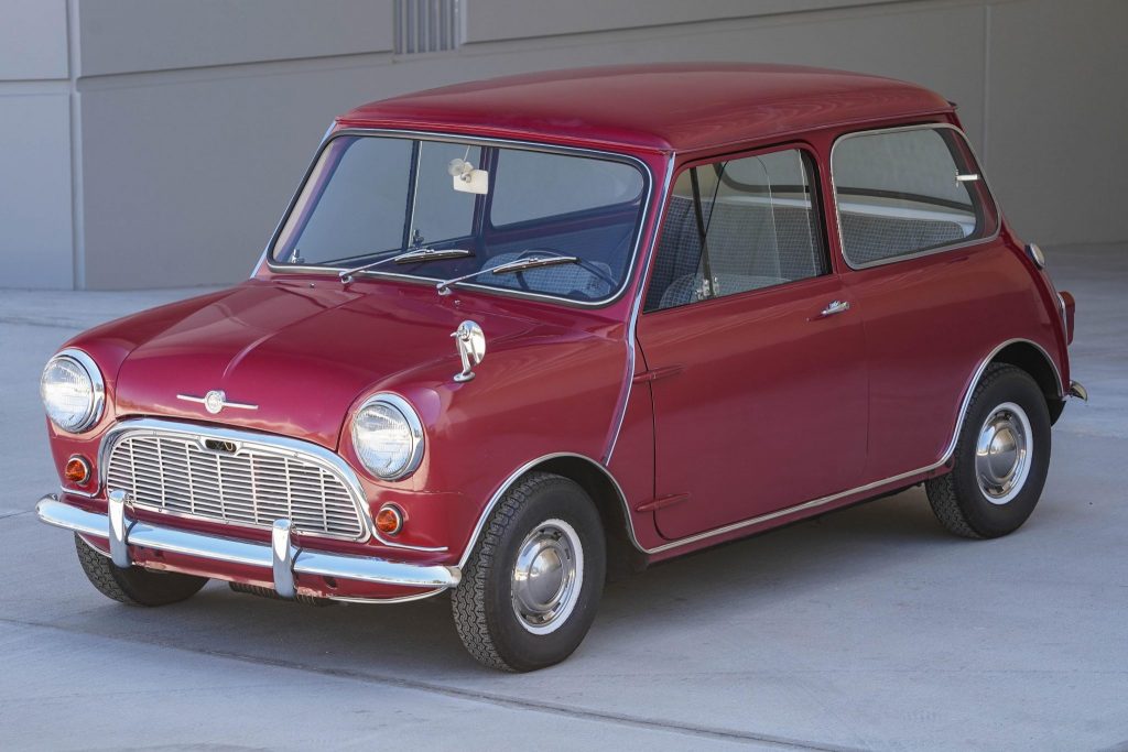 This 1960 Morris 850 is a North American-market example that was sold new in August 1960 to a proprietor of Grays Harbor Motors in Aberdeen, Washington. The car was the subject of a series of telegram-style advertisements that promoted the model and the dealership by chronicling a road trip by the original owner’s family of five to San Francisco, California, for the February 1961 NADA convention. Following an extended period of storage, the car was acquired by the seller in September of 2016, and it was subsequently refreshed, with work including repairing and refinishing the front fender and boot lid, rebuilding the carburetor and heater, and replacing the seat foam, carpets, and weather seals. Finished in red over a patterned cloth interior, the car is powered by an 850cc inline-four paired with a four-speed manual transaxle.