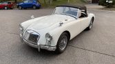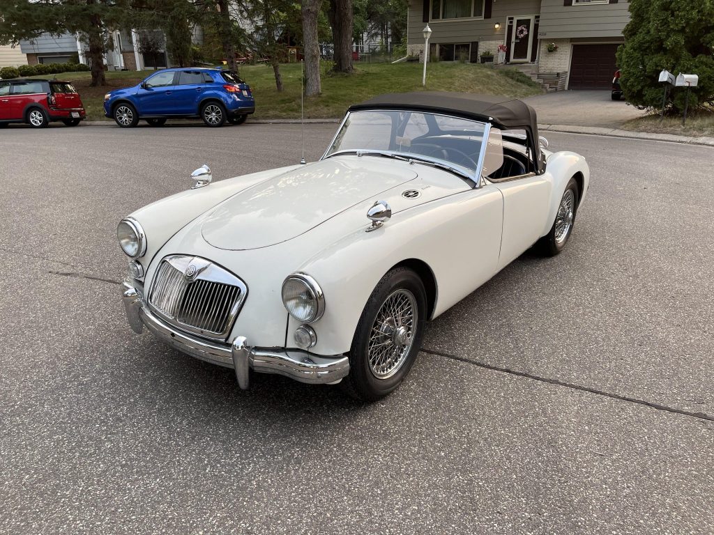 This 1961 MGA 1600 MK1 roadster was acquired by the owner in June 2001, and a subsequent refreshment included re-upholstery of the interior in black with light blue piping as well as installing chrome-plated Dayton 60-spoke wire wheels, a stainless steel exhaust system, brake lines, a rebuilt distributor, and a Mocal oil cooler radiator. Power is provided by a 1.6-liter inline-four paired with a four-speed manual gearbox, and additional features include a period Motorola transistor-powered radio, a Stayfast tonneau cover, and a luggage rack.