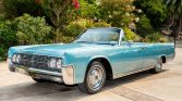 This 1962 Lincoln Continental convertible was purchased by the seller’s family in October 1963 from Berkeley Motors in Berkeley, California and acquired by the seller in 1999. The car is finished in Riviera Turquoise over a matching interior, and power is supplied by a 430ci V8 mated with a dual-range three-speed automatic transmission. Additional equipment includes a white convertible top, 15” wheels, rear-hinged rear doors, an automatic-dimming headlights system, a six-way power-adjustable bench seat, and an AM…
