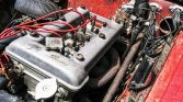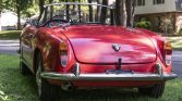 This 1963 Alfa Romeo Giulia Spider is finished in red over black upholstery, and power comes from a twin-cam 1.6L inline-four paired with a five-speed manual transmission. Features include a Weber carburetor, four-wheel three-shoe drum brakes, and fender-mounted mirrors. The car is said to run and drive, although rust repair is recommended by the seller along with engine, suspension, and upholstery work.