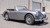 This 1963 Austin-Healey 3000 BJ7 Mk II is a 2+2 convertible that was acquired by the seller and her late husband in 1984. Finished in silver over red upholstery, it is powered by a 2.9-liter inline-six paired with a four-speed manual transmission with overdrive. Equipment includes a black convertible soft top, door-mounted mirrors, front disc brakes, a rear luggage rack, and chrome-finished 15″ knock-off wire wheels. Maintenance in preparation for the sale included a brake service, an…