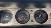 The woodgrain steering wheel fronts a machine-turned panel with instrumentation consisting of a 120-mph speedometer and a tachometer with a 6,500-rpm redline flanked by fuel-level, engine-temperature, and oil-pressure gauges. The five-digit odometer shows 10k miles.