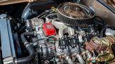 The engine installed is said to have been a GM Performance Parts LS376-525 crate motor rated at 525 horsepower. It is topped by a Holley carburetor, and the coated Hedman Husler long-tube headers are linked to a stainless-steel dual exhaust system. The aluminum radiator is cooled by an electric fan, and MSD ignition was also utilized.