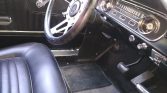 The cabin features front bucket seats and a rear bench that were reupholstered in black vinyl under previous ownership, at which time the carpets and headliner are said to have been replaced. Amenities include polished trim, front and rear crank windows, a GT steering wheel, a heater, and an aftermarket Phase Linear CD stereo. The heating coil is said to have been replaced under previous ownership.