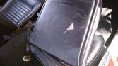 Steel 13″ front wheels with polished covers wear 175/70 Douglas tires, while black-finished 15″ American Racing wheels are mounted out back with older 205/65 Pirelli P2000 tires. The seller states that the two removed 13″ steel wheels and covers with Douglas tires are included in the sale.