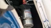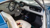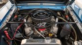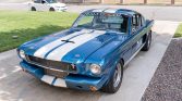 This 1965 Ford Mustang fastback was refurbished in the style of a GT350 in the 1990s and was further modified by the seller since his acquisition in 2007. The car is finished in blue with white stripes over white vinyl upholstery and is powered by a 363ci Windsor V8 fitted with World Products iron cylinder heads, a Scat forged internal reciprocating assembly, a Bullet solid-lifter cam, MSD ignition, and a Holley 650-cfm carburetor on an Edelbrock manifold.…