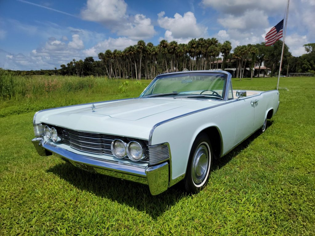 This 1965 Lincoln Continental convertible is finished in Platinum over white leather and is powered by a 430ci V8 paired with a three-speed automatic transmission. The car was acquired by the seller in 2008 and subsequently refurbished with work consisting of a repaint, servicing the convertible top, reupholstering the interior, rechroming the trim, and rebuilding the suspension, brakes, engine, and transmission. Equipment includes a power-operated white convertible top, air conditioning, a power antenna, an Edelbrock four-barrel carburetor,…