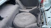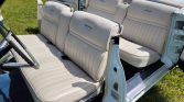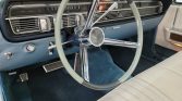 Steel 15″ wheels wear polished Continental covers and are mounted with whitewall tires. Braking is provided by power-assisted front discs and rear drums. The suspension was rebuilt with replacement bushings, shock absorbers, tie rods, and ball joints, and the master cylinder, brake pads, shoes, wheel cylinders, and calipers were replaced.