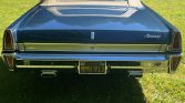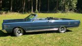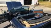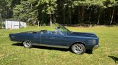 This 1965 Mercury Park Lane two-door convertible is finished in Dark Blue Metallic over blue vinyl upholstery. Power is from a 390ci V8 mated to a three-speed automatic transmission, and equipment includes a power-operated tan soft top, 15″ American Racing Torq Thrust wheels, a Holley four-barrel carburetor, power-assisted steering, power-assisted front disc brakes, dual electric fans, and an AM/FM radio.