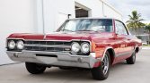 This 1965 Oldsmobile 442 convertible is powered by a 400ci V8 linked to a three-speed Turbo Hydra-Matic automatic transmission and is finished in red with a power-operated white soft top over red vinyl upholstery. Equipment includes Super Sport 15″ wheels, red-line tires, power steering, power-assisted drum brakes, dual exhaust, front bucket seats, and Sunpro auxiliary gauges. The vehicle was refurbished at some point prior to 2018. Subsequent service is said to have involved overhauling the brakes and replacing…