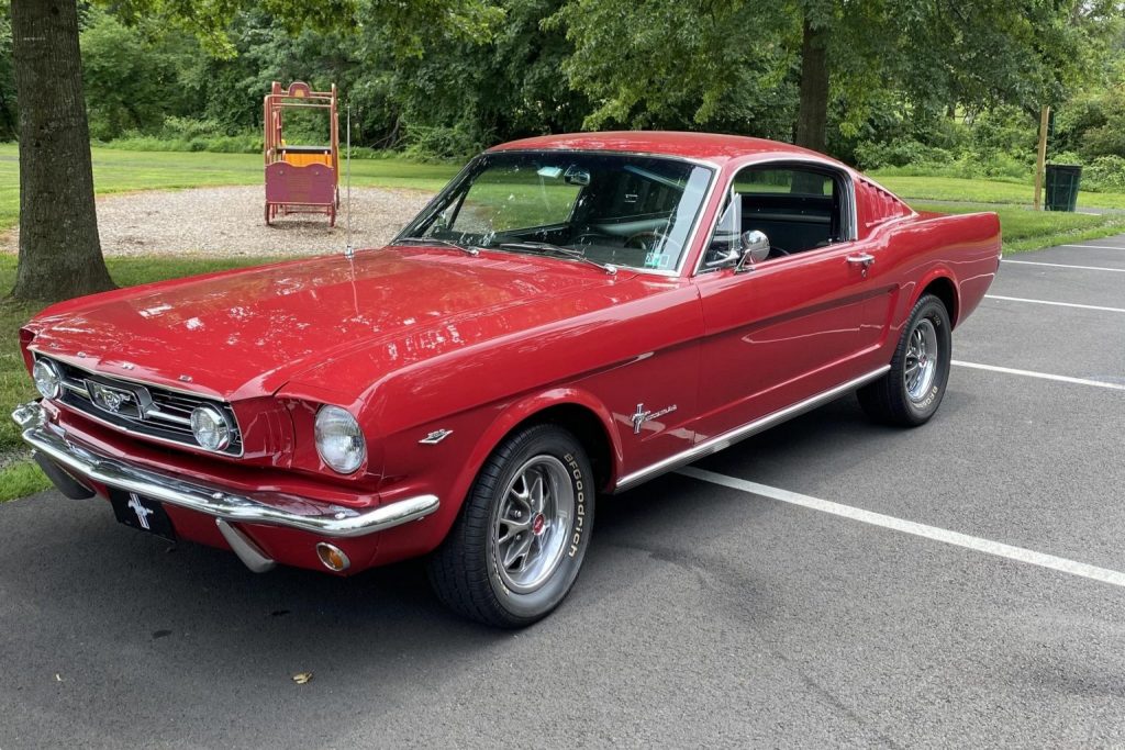 This 1966 Ford Mustang fastback is powered by a 289ci V8 paired with a four-speed manual transmission, and it has been refinished in red over a black interior. Equipment includes styled wheels, front disc brakes, folding rear seats, an aftermarket carburetor, a wood-rimmed steering wheel, and a retro-style modern radio. The car is said to have originally resided in Alaska and was relocated to Minnesota before the seller obtained it from the reported second owner in late 2019. Work performed under current ownership included servicing the suspension and brakes as well as replacing the carburetor, the battery, and the tires.