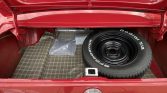 Chrome 14″ styled steel wheels wear beauty rings and feature red Mustang centers. Size 215/60 front and 245/60 rear BFGoodrich Radial T/A tires with raised white letters show 2018 and 2019 date codes. The car has front disc and rear drum brakes, the former of which the seller has had serviced. A matching spare tire is located in the trunk.