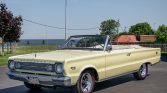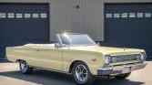 This 1966 Plymouth Satellite convertible is said to have undergone a rotisserie refurbishment under prior ownership around 2018. Finished in yellow with a white convertible top over white vinyl upholstery, the car is powered by a 383ci V8 paired with a TorqueFlite three-speed automatic transmission. Features include an 8¾” rear end with a limited-slip differential as well as an Edelbrock four-barrel carburetor, chrome-finished valve covers, Magnum 500–style wheels, BFGoodrich red-line tires, dual exhaust, power steering, front disc brakes,…