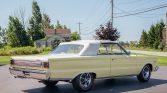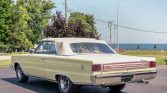 This 1966 Plymouth Satellite convertible is said to have undergone a rotisserie refurbishment under prior ownership around 2018. Finished in yellow with a white convertible top over white vinyl upholstery, the car is powered by a 383ci V8 paired with a TorqueFlite three-speed automatic transmission. Features include an 8¾” rear end with a limited-slip differential as well as an Edelbrock four-barrel carburetor, chrome-finished valve covers, Magnum 500–style wheels, BFGoodrich red-line tires, dual exhaust, power steering, front disc brakes, QA1 suspension components, a center console, and a heater. A retro-style push-button radio was installed under current ownership, and the fuel gauge was replaced.