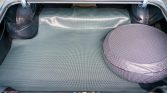 The interior was refreshed with reupholstered Parchment vinyl seats and door panels along with replacement black carpeting. Faux-woodgrain trim adorns the dash, and additional interior features include a cueball shift knob, air conditioning, a push-button radio, rubber Pontiac-branded floor mats, and lap belts for all occupants. The removed center console and interior upholstery are included in the sale.
