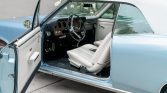 Finished from the factory in Fontaine Blue, the body was removed from the frame and repainted during the refurbishment. A replacement white soft top has been fitted, and additional exterior features include stacked headlamps, hood scoops, and chrome bumpers.