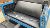 The seats are upholstered in black vinyl and are joined by matching door panels and replacement carpets protected by rubber floor mats. Features include a locking glovebox and a retro-style push-button stereo.