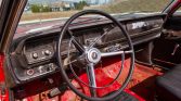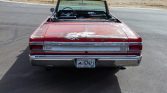 Originally finished in white, the body was repainted red under previous ownership, and the seller notes the presence of body filler. A convertible top frame and mechanism are retained, although no fabric is present. Additional features include simulated hood scoops, bright-finished trim, chrome bumpers, and dual exhaust.