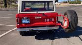 This 1968 Ford Bronco is refinished in Rangoon Red over red vinyl and black cloth and is powered by a replacement 5.0-liter V8 that was installed under prior ownership. Power is sent to the rear or all four wheels through a three-speed manual transmission, a Dana 20 dual-range transfer case, a Dana 30 front axle, and a limited-slip rear differential. Additional equipment includes aluminum cylinder heads, front disc brakes, 15″ slotted alloy wheels, a removable white hardtop, and…