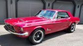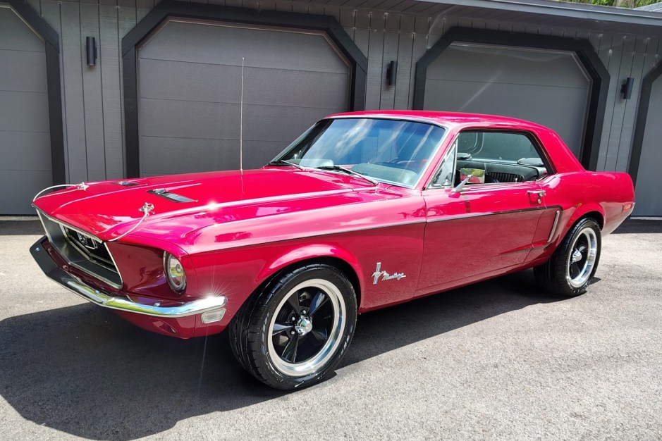 This 1968 Ford Mustang coupe was overhauled with the installation of a 302ci V8, a five-speed manual transmission, and a 9″ rear end as well as a repaint in red and a reupholstering of the interior in black. Features include a Positraction 3.73 differential, US Mags 17″ wheels, power-assisted front disc brakes, power steering, front bucket seats, air conditioning, a center console, a RetroSound Bluetooth-capable stereo, and Pioneer speakers.