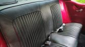 The cabin was refurbished and features front bucket seats and a rear bench reupholstered in black vinyl as well as an aftermarket center console with storage and cupholders. Additional appointments include Vintage Air air conditioning, a RetroSound Bluetooth-capable stereo, Pioneer speakers, and lap belts.