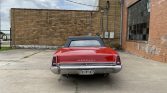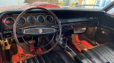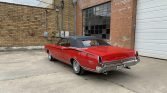 This 1968 Mercury Montego MX convertible is finished in red with black stripes over black vinyl upholstery, and power is provided by a 302ci V8 paired with a three-speed automatic transmission. Equipment includes a black soft top, an eight-track player, bucket seats, and a center console with a floor-mounted shifter. The power steering return line was replaced and the automatic transmission fluid was changed in January 2021.