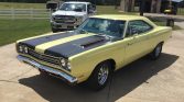 This 1969 Plymouth Road Runner hardtop is finished in yellow over a black interior and powered by a 383ci V8 paired with a four-speed manual transmission. Equipment includes a 3.23:1 rear differential, 15″ five-spoke Cragar wheels, front disc brakes, black hood stripes, chrome trim, and an aftermarket CD stereo. The seller acquired the car in September 2020 from a previous owner after a refurbishment was completed in January 2017. Work completed as part of the refurbishment reportedly…
