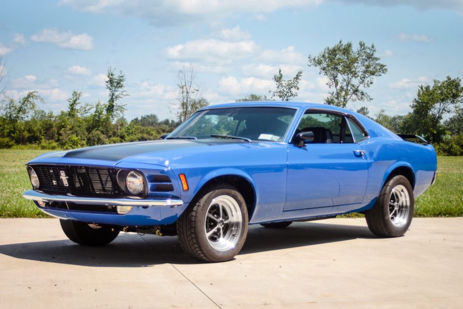 This 1970 Ford Mustang was acquired by the seller in 2010 and has since been modified with installation of a supercharged 4.6-liter V8 from a 2004 Mustang Cobra along as well as a five-speed Tremec TKO-600 manual transmission and a 9″ rear axle with a limited-slip differential. The car was repainted in its current blue finish and the black interior features a Cobra-sourced instrument panel and steering wheel. Additional equipment includes air conditioning, cruise control, a Hurst shifter, power rack-and-pinion steering, a coilover suspension system, Wilwood disc brakes, and 16″ Magnum 500-style wheels.