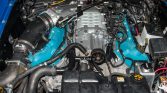The supercharged 4.6-liter V8 was reportedly sourced from a 2004 Mustang Cobra, which was factory rated at 390 horsepower and 390 lb-ft of torque. The engine retains its wiring harness, and additional work performed as part of the build included replacing the starter, radiator, power-steering pump, air-conditioning compressor, and condenser. The car also features a dual exhaust system.