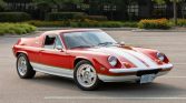 This 1973 Lotus Europa Twin Cam Special was acquired by the seller in 2015, and subsequent refurbishment work included refinishing the exterior in two-tone red and white with metallic green accents, retrimming the interior with black upholstery, and overhauls of the braking and suspension systems. Power comes from a rebuilt 1.6-liter DOHC inline-four mated to a five-speed manual transaxle, and equipment includes a wooden shift knob, Talbot Berlin mirrors, power windows, HRE three-piece 15″ wheels, a burl…
