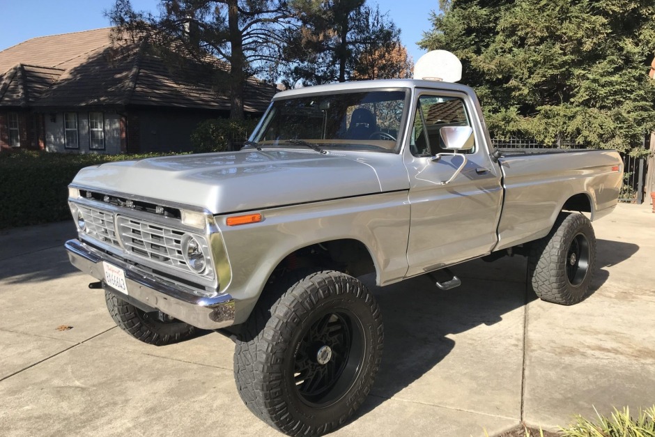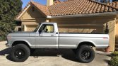 This 1974 Ford F-250 is a regular-cab long-bed pickup finished in silver over black and was acquired by the seller in June 2020. The truck is powered by a 5.9-liter 12V Cummins turbo diesel paired with a five-speed manual transmission and a dual-range transfer case. Equipment includes spray-on bed liner, a diamond plate toolbox, a hitch receiver, towing mirrors, side steps, tow loops, a Viper alarm system, an updated interior, power door locks, a CB radio, and…