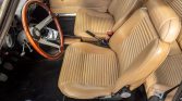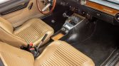 The car was repainted in Faggio following bodywork that reportedly included the replacement of sheet metal at the bottom of the rear window, side sills, jack points, and front lower panels. Additionally, the windshield was replaced and Euro-spec side markers were installed. The car is equipped with chrome bumpers with overriders and pop-out side windows.