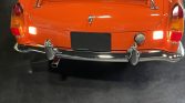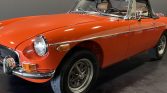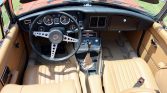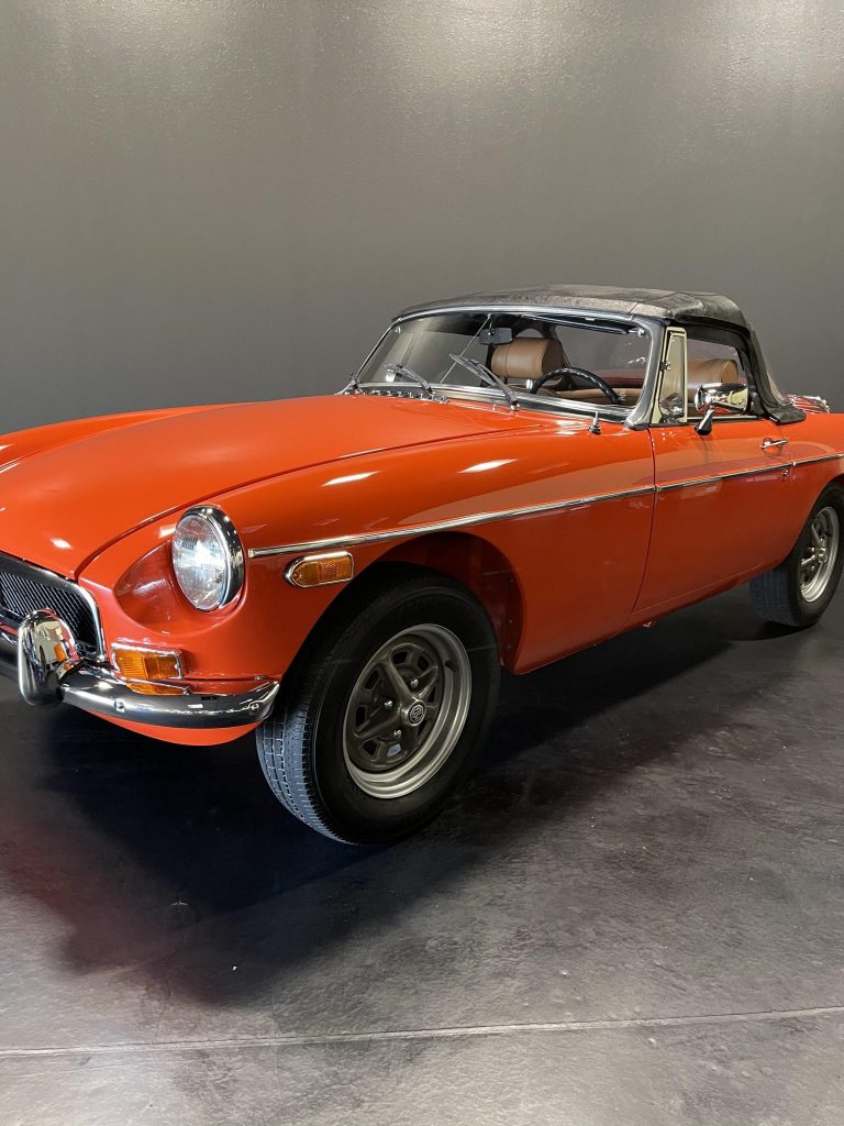 This 1975 MG MGB Roadster was acquired by the seller as a project in 2013 and has since been refinished in orange over tan leather upholstery. Power is provided by a replacement 1.8-liter inline-four mated to a four-speed manual transmission, and additional equipment includes a black soft top, 14″ Rostyle wheels, a Zenith-Stromberg carburetor, chrome bumpers with overriders, and a chrome luggage rack.