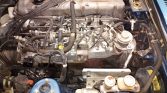 The 2.8-liter L28E inline-six was factory rated at 170 horsepower and is equipped with an aftermarket cat-back exhaust system. The seller notes the air conditioning compressor and lines were replaced in the last year and the oil pressure sensor is a newer item.