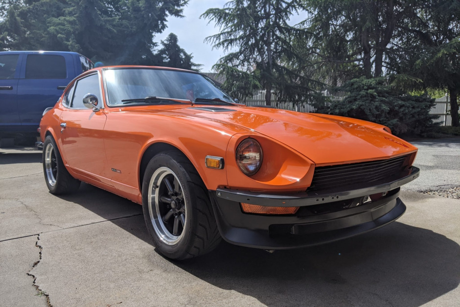 This 1977 Datsun 280Z was acquired by the seller and his father as a project in 2009, and it was subsequently refurbished and modified. The exterior was refinished in orange, a MOMO Super Cup bucket seat was fitted in the black interior, and a rebuilt 5.3-liter Vortec V8 was installed along with a Tremec T56 six-speed manual transmission. Additional modifications include a Quaife limited-slip differential, Swift springs, Tokico adjustable shocks, disc brakes with Wilwood components, a stainless-steel exhaust system with 3″ piping, Schroth four-point harnesses, a roll cage, front and rear spoilers.
