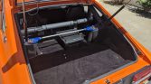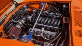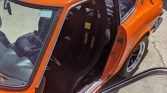 The exterior was reportedly refinished in Lamborghini Arancio Ishtar and has been fitted with front and rear tow points, a Xenon front air dam, a BRE rear hatch spoiler, “5.7L LS1” badging, and a 1973-specification tail panel, bumpers, and turn signals. The antenna has been removed and the seller notes some blemishes on the driver’s window as well as rock chips on the front end.