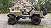 This 1977 Jeep CJ-7 is a modified example that was acquired by the current owner earlier this year. The replacement body has been painted in metallic beige and fitted to a Throttle Down Kustoms frame, and power is supplied by a 304ci V8 that has been fitted with an aluminum radiator, a Painless Performance wiring harness, and an Edelbrock air cleaner, intake manifold, and ribbed valve covers. Power is sent to the rear or all four wheels…