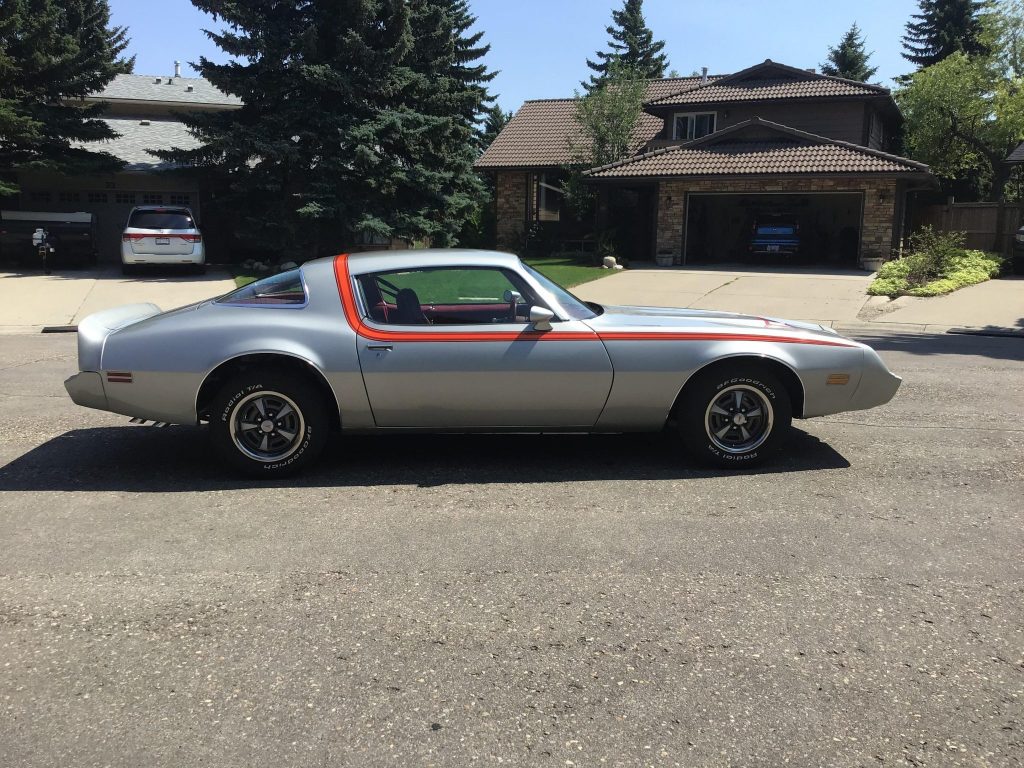 This 1979 Pontiac Firebird coupe is a Canadian-market example that has reportedly been in the seller’s family since new and was acquired by the seller in 2018. Subsequent work is said to have included a repaint in silver and the installation of a 400ci V8 and replacement differential gearing. The car is equipped with a four-speed manual transmission, a red vinyl interior, front disc brakes, a rear spoiler, dual hood scoops, Rally II wheels, and a push-button cassette stereo. The fluids were changed in preparation for the sale.