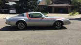 This 1979 Pontiac Firebird coupe is a Canadian-market example that has reportedly been in the seller’s family since new and was acquired by the seller in 2018. Subsequent work is said to have included a repaint in silver and the installation of a 400ci V8 and replacement differential gearing. The car is equipped with a four-speed manual transmission, a red vinyl interior, front disc brakes, a rear spoiler, dual hood scoops, Rally II wheels, and a push-button…