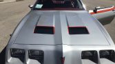The car was refinished in silver during current ownership and features two-tone red striping and hood duct openings. Additional equipment includes sport side mirrors, quad headlights, quad exhaust outlets, and a rear spoiler.