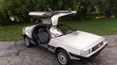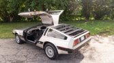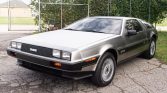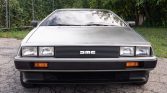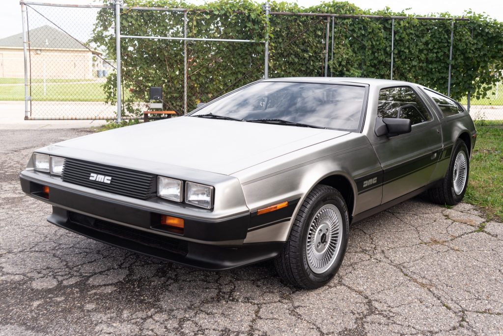 This 1981 DeLorean DMC-12 was first sold by Pfeiffer Lincoln-Mercury of Grand Rapids, Michigan, and the seller acquired it in October 1990 and has since added 500 of its 1,900 indicated miles. The car features brushed stainless-steel bodywork with black textured stripes, and it is powered by a 2.85-liter V6 paired with a three-speed automatic transaxle. Equipment includes gullwing doors, gray leather upholstery, a louvered rear window cover, air conditioning, staggered-diameter alloy wheels, and dealer-installed cruise control. The car was reportedly stored between 1995 and 2019, and it was mechanically refurbished before it was displayed at the 2021 Concours d’Elegance of America in Plymouth, Michigan.