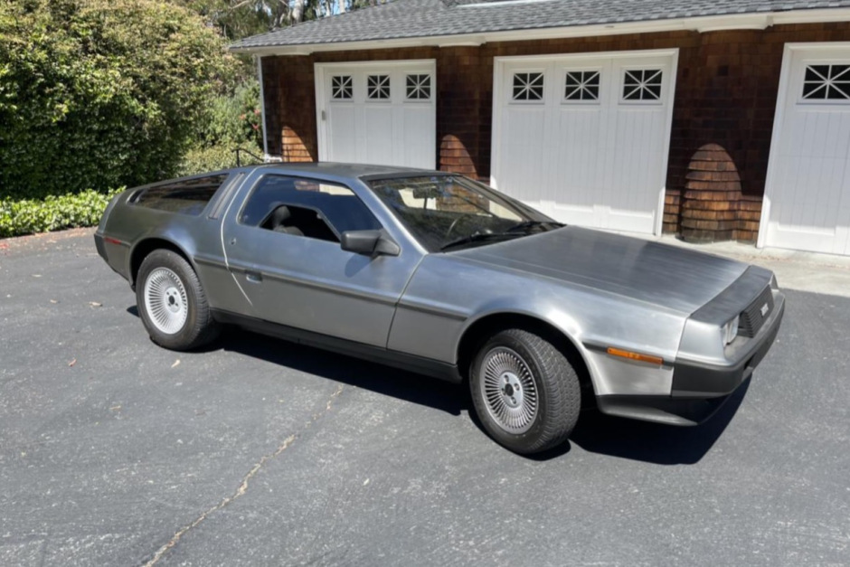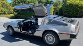 …This 1981 DeLorean DMC-12 features a stainless-steel exterior over a black interior, and power comes from a 2.85-liter PRV V6 that is paired with a three-speed automatic transaxle. Equipment includes vertically opening doors, 14″ aluminum wheels, power-assisted four-wheel disc brakes, a Wings-A-Loft remote door opening system, air conditioning, electric windows, and an AM/FM/cassette stereo. An October 2018 service included overhauling the cooling system, servicing the transaxle, as well as replacing the alternator, the fuse box, radiator, and fans.
