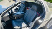 The cabin features bucket seats upholstered in black leather with a matching dashboard, door panels, center console, and carpeting. Equipment includes air conditioning, electric windows, and an AM/FM/cassette stereo.