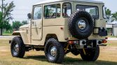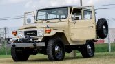 This 1982 Toyota Land Cruiser FJ40 is said to have spent time in Venezuela, and it was reportedly refurbished and imported to the US in 2024. The truck is finished in beige over tan upholstery and is equipped with a removable hardtop, a Smittybilt winch, 15″ steel wheels, Aisin manually locking front hubs, power steering, and Old Man Emu shocks. Other features include air conditioning, a heater, an aftermarket stereo, and rear jump seats. Power is provided by a 4.2-liter 2F inline-six linked with a four-speed manual transmission and a dual-range transfer case.