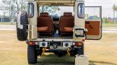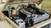 The 4.2-liter 2F inline-six is equipped with a single carburetor and sends power to the rear or all four wheels through a four-speed manual transmission and a dual-range transfer case. The engine and transmission are said to have been rebuilt during the refurbishment.