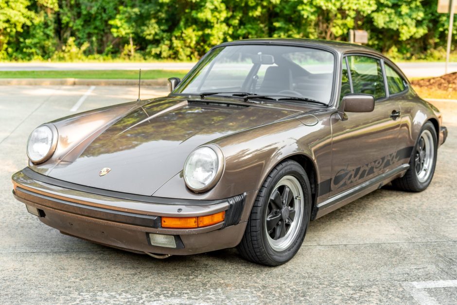 This 1984 Porsche 911 Carrera is finished in bronze metallic over brown leather and powered by a 3.2-liter flat-six paired with a five-speed manual transaxle. The car features 16″ Fuchs forged alloy wheels, Carrera side script graphics, Bilstein shocks, GT Racing European racing headers, a Dansk muffler, a Steve Wong ECU chip, H4 headlights with LED bulbs, a MOMO Prototipo steering wheel, an aftermarket front sway bar, and Elephant Racing torsion bars, and the car does not…